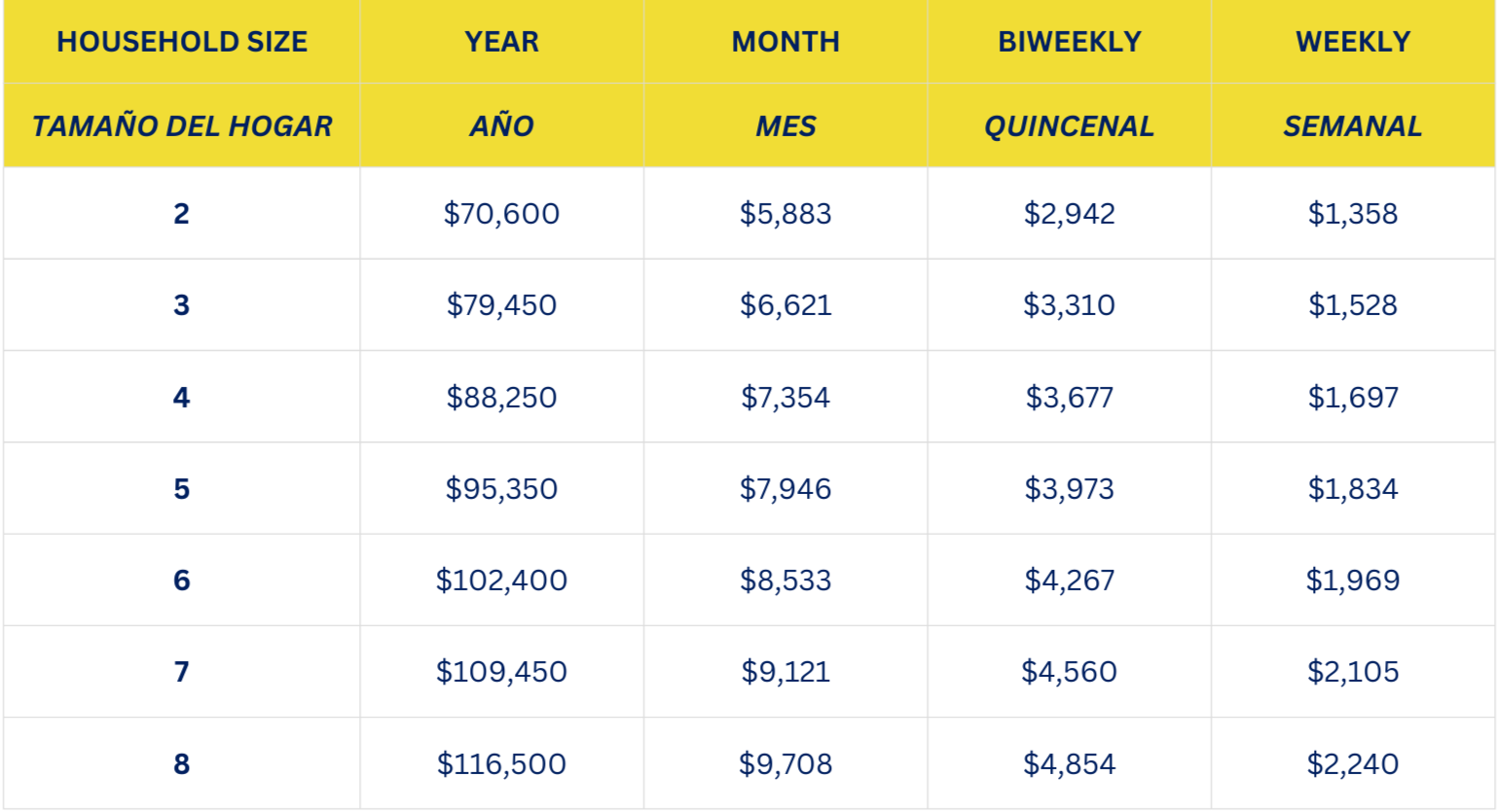 Los límites de ingresos según el tamaño del hogar que se indican a continuación se utilizarán para determinar la elegibilidad para las becas completas de campamento de verano. Estos límites de ingresos se basan en las pautas de 2025 establecidas por el Departamento de Vivienda y Desarrollo Comunitario del Condado de Santa Bárbara. Las familias con ingresos iguales o menores a estos límites califican para la beca, pero tenga en cuenta que no cubre la tarifa de inscripción.
